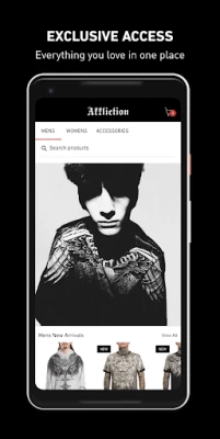 Affliction offre accesso esclusivo a contenuti unici. Vivi un'esperienza utente superiore grazie alla navigazione estremamente semplice e un processo di checkout incredibilmente rapido. Affliction rende l'accesso privilegiato facile e veloce.