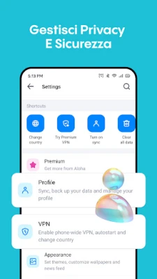 La tua tranquillità digitale è una priorità per Aloha Browser. Integriamo una VPN robusta che crittografa la tua connessione, assicurando che ogni tua sessione online rimanga protetta e riservata, lontano da occhi indiscreti e tracciamenti. A questo si aggiunge un blocco annunci evoluto, progettato per purificare la tua esperienza di navigazione, velocizzando i tempi di caricamento e rimuovendo interruzioni superflue. E una volta che i tuoi video sono stati salvati, il lettore integrato di Aloha ti permette di goderteli istantaneamente, supportando un'ampia gamma di formati senza richiedere applicazioni aggiuntive, offrendo un'esperienza multimediale completa.