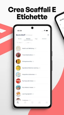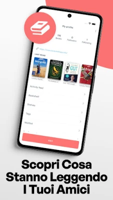 **Bookshelf** ti accompagna oltre la semplice gestione, ispirandoti a leggere di più e a connetterti con una comunità appassionata. Imposta obiettivi di lettura annuali o personalizzati per rimanere motivato e condividi il tuo percorso con gli amici creando il tuo profilo social. Lascia che i tuoi follower scoprano le tue ultime letture, la tua lista dei desideri e i tuoi traguardi. Esplora nuove storie attraverso i bestseller in diverse categorie, valuta e recensisci i libri che ami (anche con mezze stelle!) per aiutare altri lettori, e gestisci una lista dei desideri dettagliata, con la possibilità di monitorare i prezzi in alcuni paesi. Avrai accesso a statistiche complete sul tuo profilo di lettura, dagli acquisti ai progressi e ai generi preferiti. E non preoccuparti mai dei tuoi dati: sono al sicuro sui nostri server e accessibili semplicemente accedendo al tuo account, con la possibilità di esportare tutto in CSV per un backup personale. Per chi cerca funzioni ancora più avanzate, sono disponibili i piani di abbonamento **Bookshelf Pro**, con un periodo di prova gratuito di 7 giorni per esplorarne tutte le potenzialità.