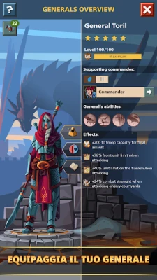 La tua roccaforte, dalle umili fondamenta, diventerà il simbolo inespugnabile del tuo dominio. Raduna legioni di valorosi cavalieri, arcieri e spadaccini, equipaggiandoli con armi letali, e conducili alla vittoria su quattro vibranti regni. Ma la vera maestria risiede nella mente: sblocca e sfrutta le abilità uniche di generali leggendari, trasformando ogni scontro in un calcolo tattico. L'espansione del tuo impero non si limita alla conquista militare; la produzione di risorse vitali e il commercio astuto con altri signori alimenteranno la tua crescita, trasformando ogni successo in gloria e ricchezza ineguagliabili.