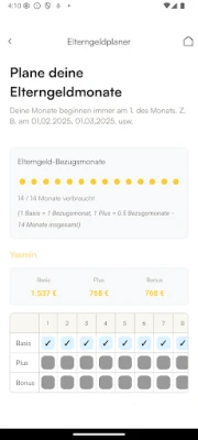 formie si configura come il tuo alleato indispensabile per una pianificazione dell'Elterngeld sicura e intuitiva. Al suo cuore pulsa un'intelligenza che determina il periodo di riferimento più vantaggioso per te, massimizzando il tuo potenziale beneficio. Potrai visualizzare in tempo reale il calcolo dettagliato del tuo assegno previsto, offrendoti chiarezza immediata. L'innovativa vista calendario consente una gestione estremamente flessibile dei mesi di Elterngeld, mentre una sezione dedicata ti arricchisce con conoscenze essenziali e consigli strategici, rendendoti un esperto in materia senza alcuno sforzo.