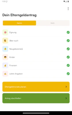 formie semplifica l'ottenimento dell'Elterngeld. L'app ti guida passo-passo attraverso la richiesta, calcolando in tempo reale l'indennità e ottimizzando il processo. Dimentica formulari complessi e burocrazia: forme rende la pianificazione del tuo sussidio parentale chiara e senza stress.