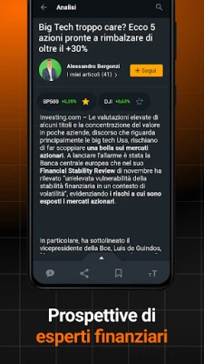 Investing.com va oltre il semplice monitoraggio, fornendoti una suite di strumenti finanziari avanzati per una comprensione approfondita. Utilizza il convertitore di valuta, lo stock screener, il calendario utili e grafici evoluti per affinare la tua analisi tecnica. Approfondisci le ultime notizie economiche, guarda video di analisi e ricevi aggiornamenti sulle tendenze di mercato, dai tassi di cambio globali come EUR/USD, ai prezzi delle materie prime come oro e petrolio, fino agli spread e ai Titoli di Stato. Che tu segua UniCredit (UCG) o Amazon (AMZN), o monitori gli indici di Asia-Pacifico o Medio Oriente, Investing.com è il tuo compagno indispensabile per dominare i mercati finanziari, sempre aggiornato sulle quotazioni e sull'andamento globale.