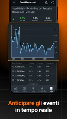 La gestione intelligente del tuo capitale è al centro dell'esperienza offerta da Investing.com. Crea e personalizza la tua watchlist con gli strumenti che ti interessano di più – azioni, valute, materie prime – e monitora l'andamento del tuo portafoglio attraverso grafici intuitivi e analisi approfondite. Il nostro calendario economico, finemente adattato ai tuoi interessi, ti notificherà in tempo reale sugli eventi mondiali chiave, permettendoti di comprendere il loro impatto sui mercati e di pianificare le tue strategie con anticipo. Non perdere mai un'opportunità grazie alle notifiche personalizzate su eventi economici e ultime notizie, direttamente sul tuo dispositivo.